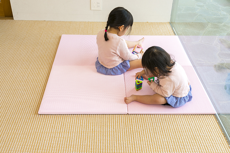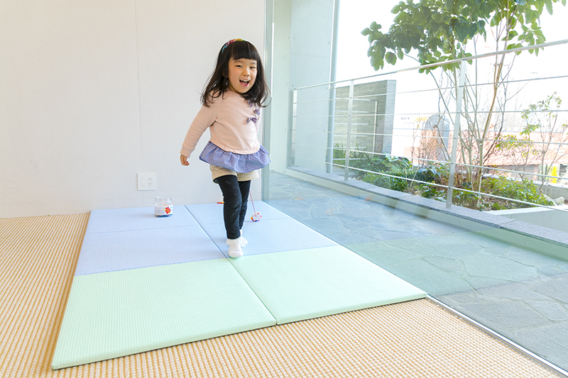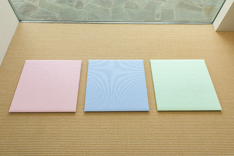 秋吉の人気置き畳シリーズを使ったお部屋のおすすめコーディネート例です。淡く明るいポップなカラーが揃っているので、お子様の好きなカラーで統一してもいいですし、複数の色を組み合わせて楽しむのもおすすめです。軽くて持ち運びも楽々なので、模様替えも気軽にできてご好評いただいています。