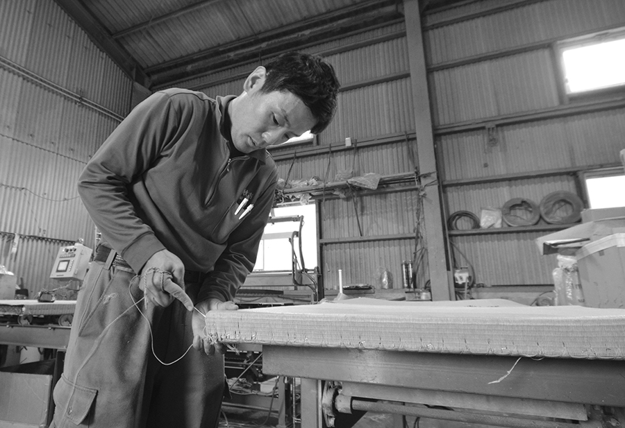 秋吉のブランド置き畳は、一枚一枚を高い技術を持つ職人(※)の手で仕上げていきます。その品質の高さは明治31年の創業以来変わらず引き継がれてきました。素材の状態だけでなく、温度や湿度を敏感に見極めつつ、常に最高の品質の畳をつくるという職人の想いが込められています。