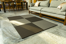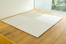 2. フローリングの上に置く置き畳はすべりの対策も大切です。秋吉の置き畳は全面に上質なすべり止めがあるので、フローリングの上でも快適にお使いいただけます。