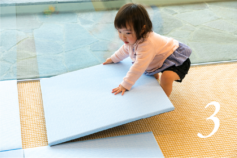 3. 秋吉の置き畳は、お子様でも持ち運ぶことができる重さと厚さでつくられていますので、季節や気分に合わせた模様替えも楽々。いろいろなお部屋で様々な置き畳ライフをお楽しみください。